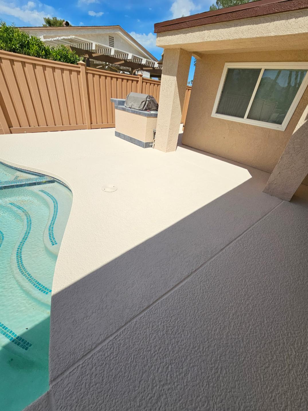 Once the surface is sound, we apply a professional refinish designed to withstand sun exposure, pool chemicals, and heavy foot traffic. Our finishes include UV-resistant coatings to protect color vibrancy, slip-resistant textures for safety, and heat-reflective options to keep surfaces cooler underfoot during hot days.